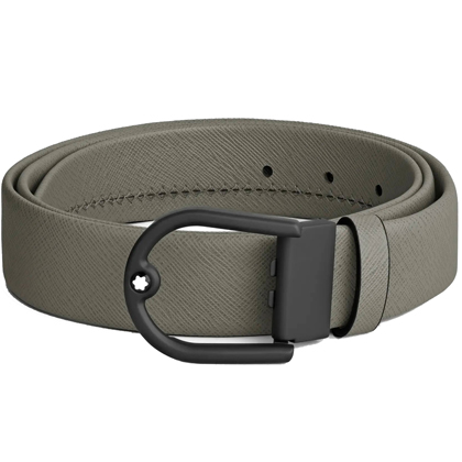 Кожаный ремень 35 мм из кожи серого цвета, пряжка в форме подковы от магазина премиальных ручек Premium Pens в Махачкале.